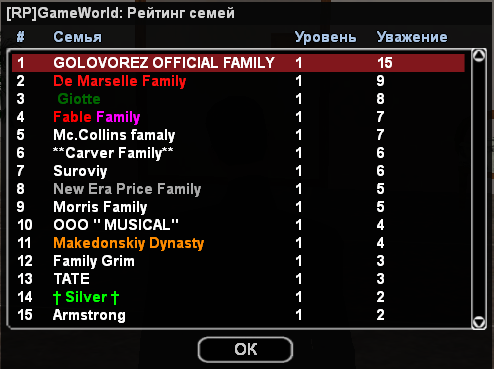Ice_Cube Posted October 22, 2010 Posted October 22, 2010 - Убраны команды /leaders /licenzers /advokats /members, за место них команда /online.- Теперь каждый лидер может отключать телефон и личку /togphone /togwhisper вип аккаунт не требуется. 2